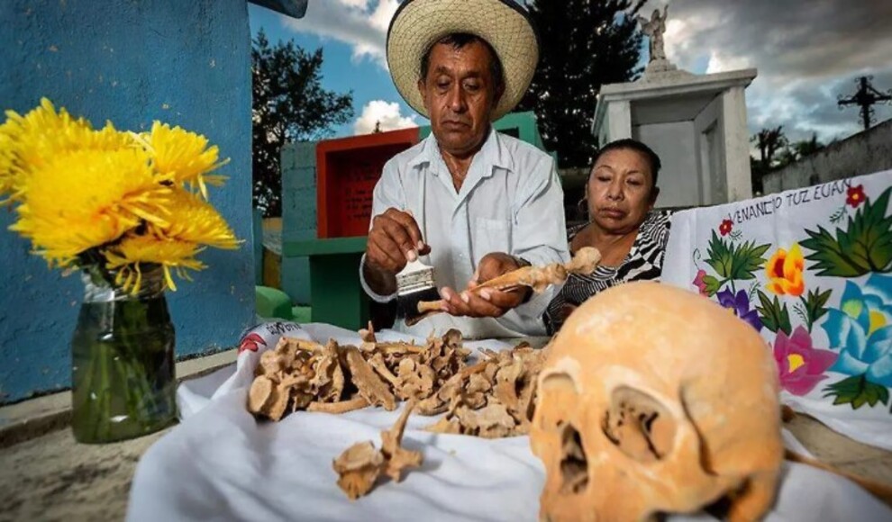 La razón: en su interior, dentro de cajas, se encuentran los huesos de los difuntos, que cada año, poco antes del Día de Difuntos, son extraídos para ser limpiados a mano por sus familiares. En Pomuch pervive una tradición que se remonta a siglos atrás. Los habitantes de esta localidad de menos de diez mil habitantes en el sureste de México exhuman a sus seres queridos tres años después de enterrarlos para lavar pulcramente uno a uno sus huesos y colocarlos en pequeñas cajas.