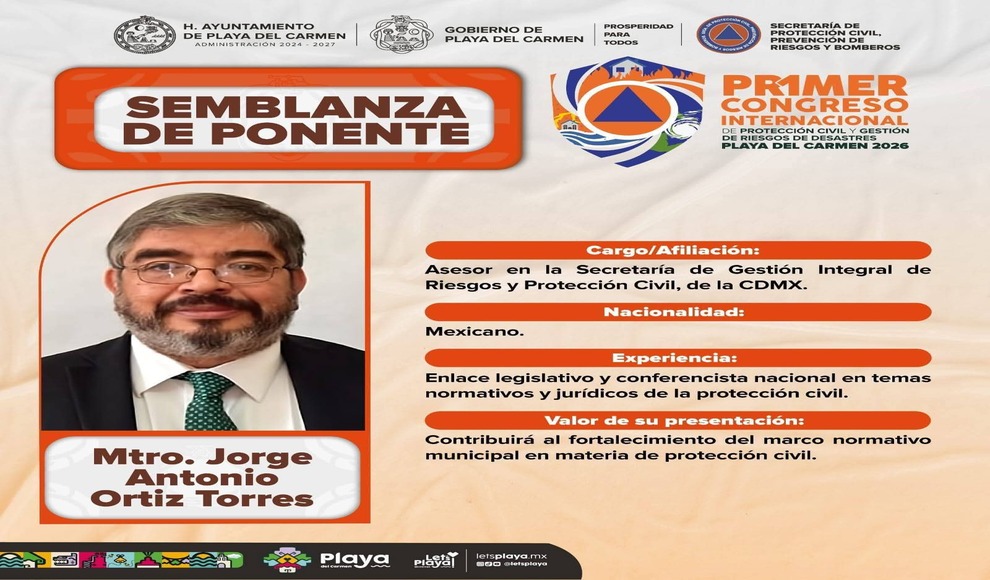 Con la realización de este Congreso, el gobierno municipal reafirma su compromiso de fortalecer una Protección Civil cercana, profesional y coordinada, proyectando a Playa del Carmen como un modelo de capacitación, prevención y resiliencia a nivel nacional e internacional.