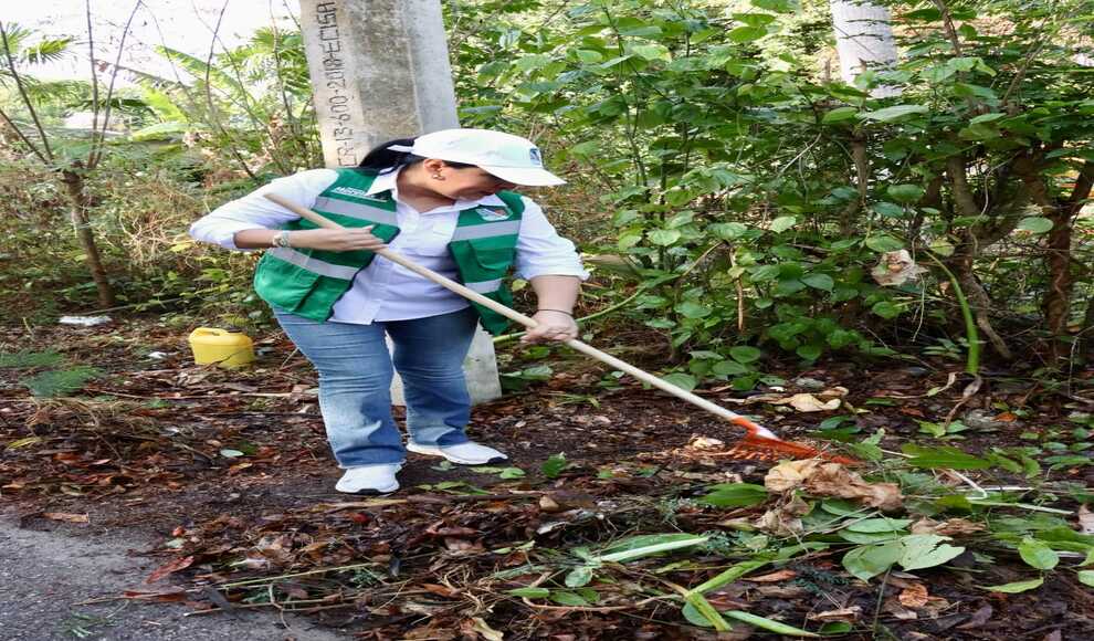 Los trabajos iniciaron en la calle Ardilla, en la Colonia Getsemaní, donde personal del Ayuntamiento y vecinos realizaron labores de poda de áreas verdes, barrido manual, recolección de basura vegetal y retiro de cacharros que previamente fueron colocados por las y los habitantes, contribuyendo así a eliminar posibles focos de infección y a mantener espacios públicos más limpios.