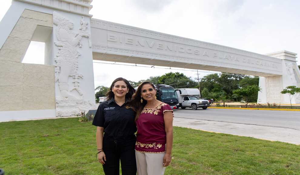 Mara Lezama y Estefanía Mercado inauguran el Arco de Acceso Norte de Playa del Carmen, equipado con alta tecnología en seguridad