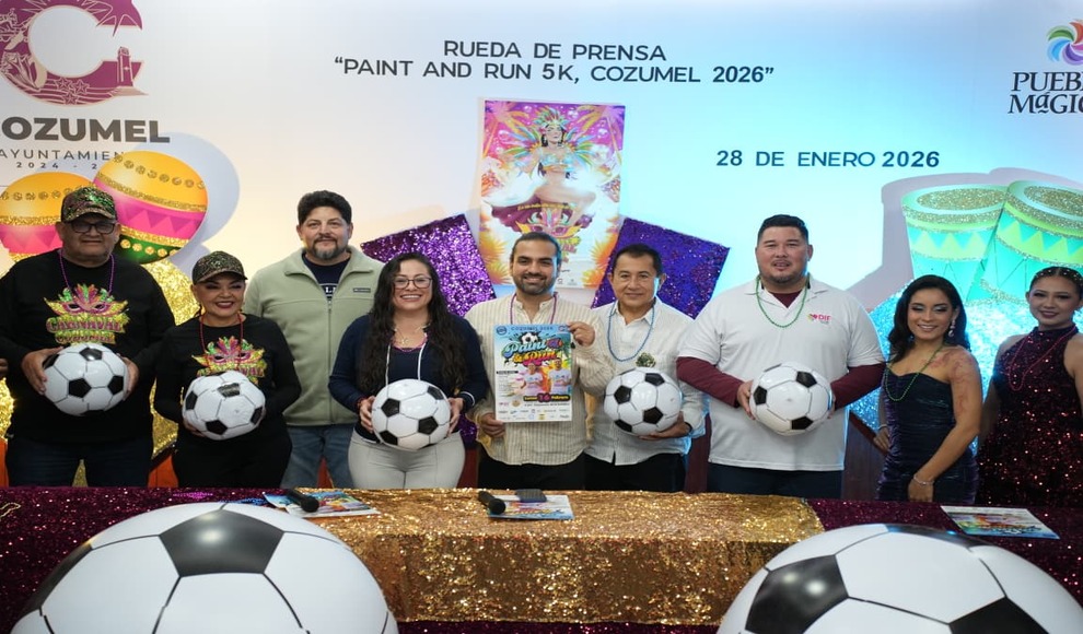 Cozumel, Quintana Roo.- El próximo 16 de febrero se realizará la tradicional y colorida carrera Paint & Run 5K Cozumel 2026, en su edición mundialista, como parte de las actividades del Carnaval de Cozumel. Este evento, de carácter familiar e inclusivo, tendrá como punto de salida y meta la explanada de la Bandera y destinará todo lo recaudado a una institución social que requiere apoyo, consolidándose como una convivencia que une deporte, alegría y solidaridad.