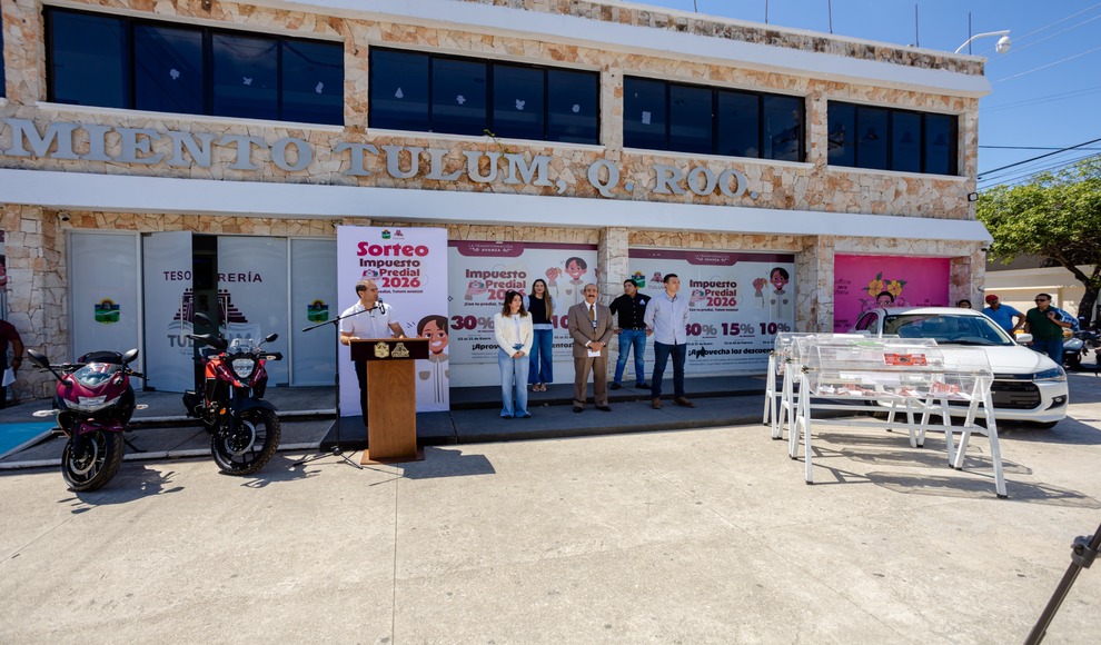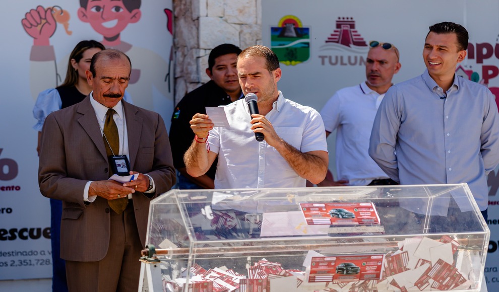 Tulum, Quintana Roo.- El presidente municipal, Diego Castañón Trejo, encabezó el sorteo de un vehículo y dos motocicletas dirigido a las y los ciudadanos que realizaron el pago de su impuesto predial durante los meses de enero, febrero y marzo, como reconocimiento a su compromiso con el municipio.
