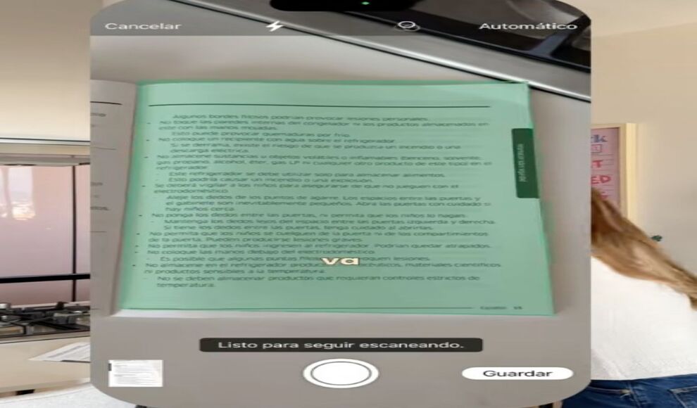 - Al activarse, la cámara entra en un modo especial. Puede detectar automáticamente los bordes del papel, resaltándolos en color verde, para asegurar que el recorte final sea limpio y solo muestre el documento.
