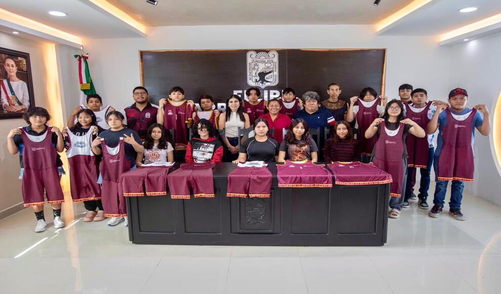 Felipe Carrillo Puerto, Q. Roo.- Atletas locales de la disciplina de halterofilia y voleibol playero, recibieron de manos de autoridades municipales, sus uniformes que portarán en la fase estatal de las olimpiadas nacional CONADE 2026, en un evento protocolario llevado a cabo la mañana de este jueves en la sala de cabildos del palacio municipal.