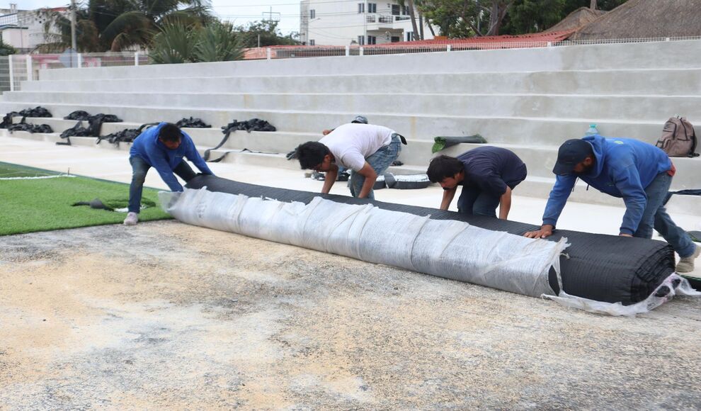 Continúan los avances en la cancha de fútbol soccer de Isla Mujeres