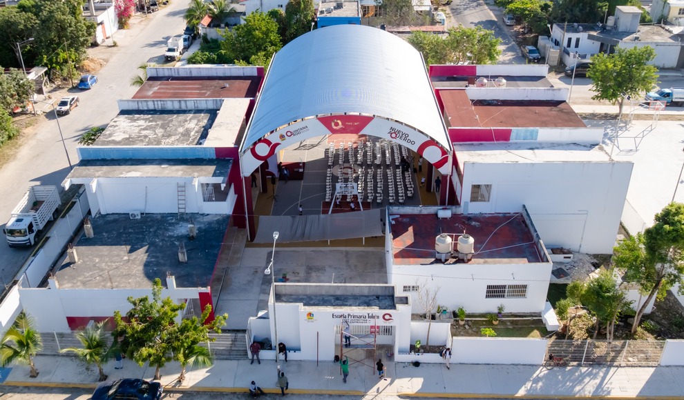 TULUM, Quintana Roo .- Más de 500 alumnas y alumnos de la escuela primaria Tulum cuentan ahora con un espacio techado que les brinda mayor comodidad y seguridad para el desarrollo de sus actividades académicas, cívicas y deportivas, resultado del trabajo coordinado entre el Gobierno del Estado que encabeza la gobernadora Mara Lezama y el gobierno municipal que lidera Diego Castañón Trejo.