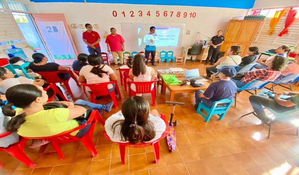 Cozumel, Quintana Roo.- Con el propósito de fomentar la responsabilidad y la cultura del respeto a las normas de tránsito desde temprana edad, la Dirección de Seguridad Pública y Tránsito continúa con el programa de Educación Vial, dirigido a estudiantes del nivel preescolar y a sus padres de familia.