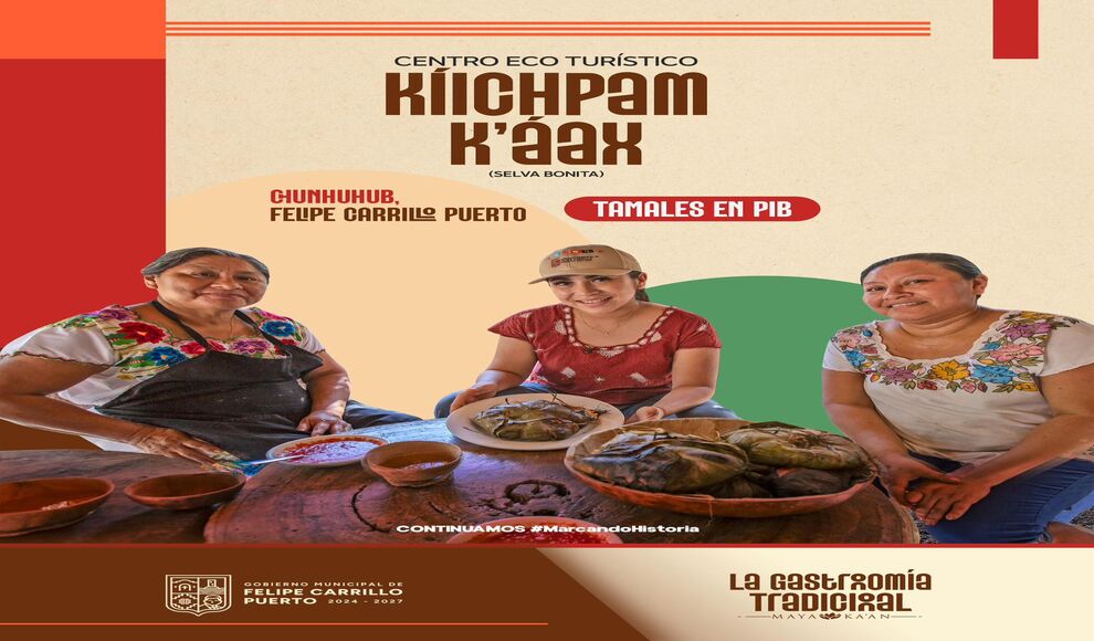 Felipe Carillo Puerto.- Con auténtico sabor al Corazón de la Zona Maya, el corredor gastronómico de la Feria Internacional de Turismo (FITUR) 2026, apuntala valiosas comunidades de Felipe Carrillo Puerto, Chunhuhub y su tradicional tamalito de pib, Tihosuco y su emblemático potaje de ibes blancos, Señor, con el inigualable huevo con chaya, Muyil con sus variables platillos e X-Pichil con las bordadoras de Lol-Chuy.