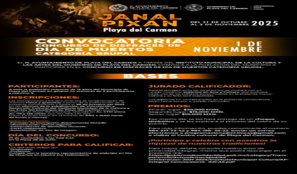 Convocan a participar en concursos con motivo del Janal Pixan 2025 en Playa del Carmen