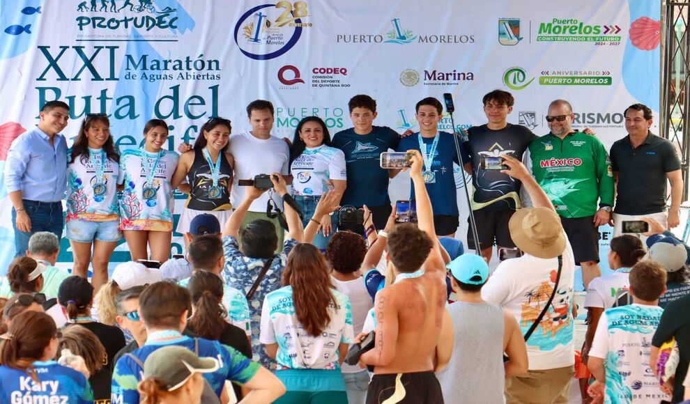 Puerto Morelos, Quintana Roo.- Con un magnífico escenario natural desde el Muelle de Pescadores y excelente clima, Puerto Morelos recibió una vez más el Maratón de Aguas Abiertas, Ruta del Arrecife, reafirmando a Puerto Morelos como un destino consolidado para el turismo deportivo.