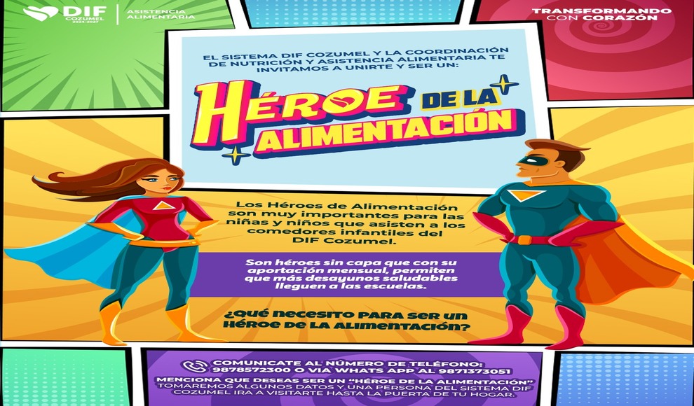 Para convertirse en un Héroe de la Alimentación, las personas interesadas pueden comunicarse al 987 857 2300 o vía WhatsApp al 987 137 3051, indicando su interés en sumarse al programa. El personal del DIF Cozumel tomará sus datos y podrá acudir hasta su domicilio para completar el registro.