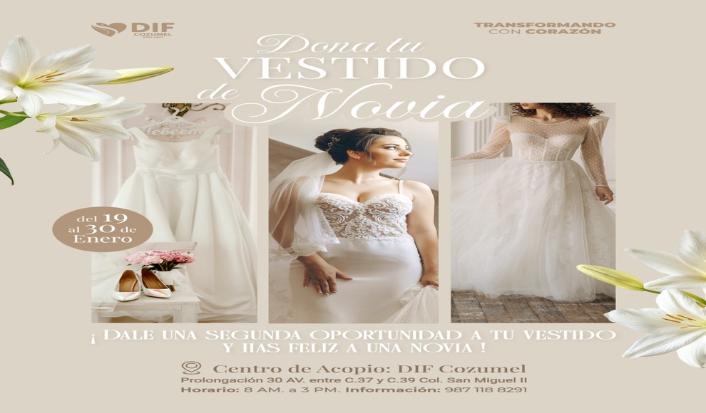 El DIF Cozumel invita a todas las mujeres que conserven su vestido de novia en buen estado a sumarse a esta noble causa y ser parte de la historia de amor de una nueva familia.