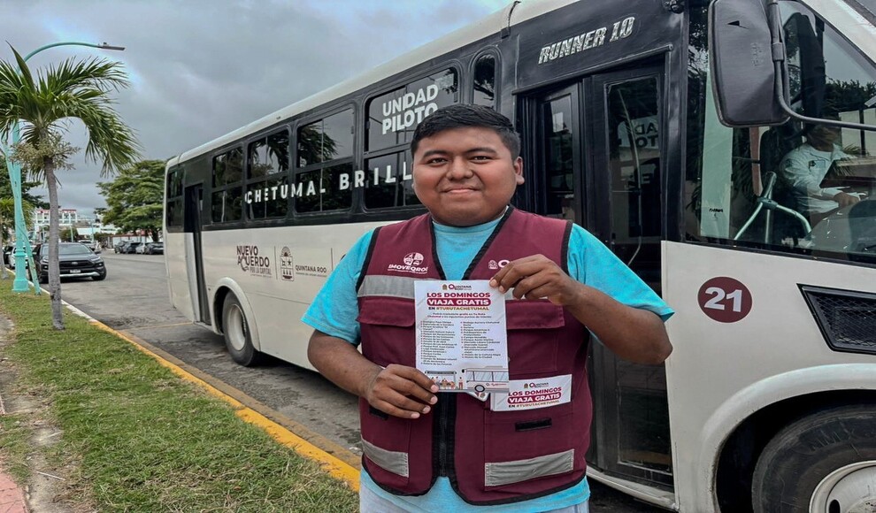Chetumal, Quintana Roo.- Con una respuesta positiva por parte de la ciudadanía, a partir de este 18 de enero inició el transporte público totalmente gratuito todos los domingos en “Tu Ruta Chetumal”, una acción impulsada por el Gobierno del Estado de Quintana Roo, encabezado por la gobernadora Mara Lezama, que pone en el centro el bienestar de las personas y el derecho a una movilidad accesible.
