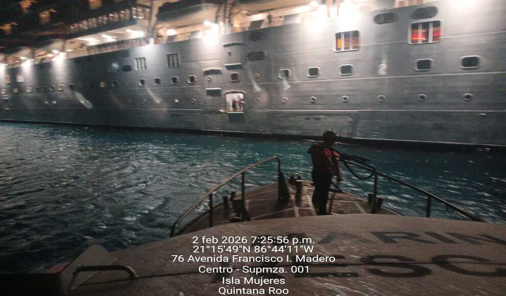 Marina realizó evacuación médica de mujer a bordo de un crucero turístico en Isla Mujeres, Quintana Roo