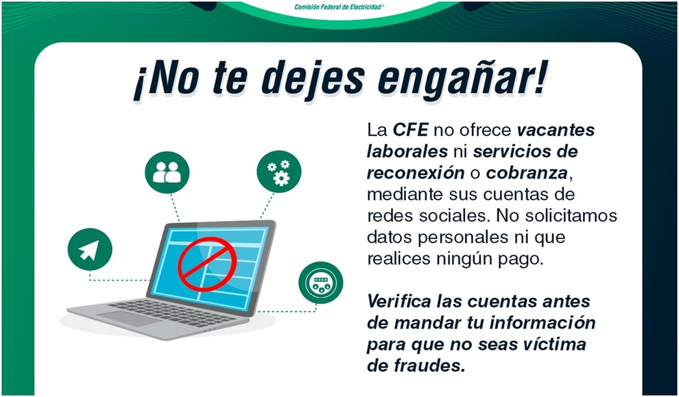 ¡NO TE DEJES ENGAÑAR!: CUIDADO CON INTENTOS DE FRAUDE A NOMBRE DE CFE