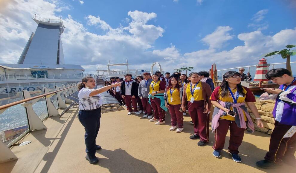 Cozumel, Quintana Roo.- Jóvenes que asisten al programa de la fundación de parques y museos de Cozumel denominado, “jóvenes por la conservación” fueron premiados por su constancia a visitar el interior de los hoteles flotantes que arriban todas las semanas a la isla de las golondrinas, informo el director del cetro de conservación y educación ambiental, de la fundación de parques y museos de Cozumel, Rafael Chacón.