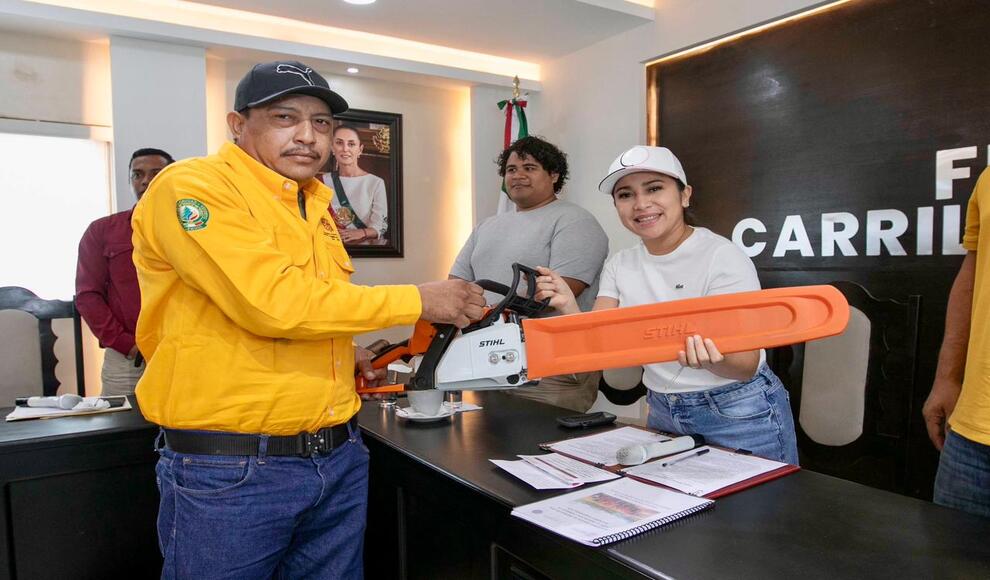 De la misma manera la presidenta municipal realizó la entrega de equipamiento de protección personal y herramienta manual a integrantes de las brigadas del programa de manejo del fuego de compensación ambiental por cambio de uso de suelo en terrenos forestales.