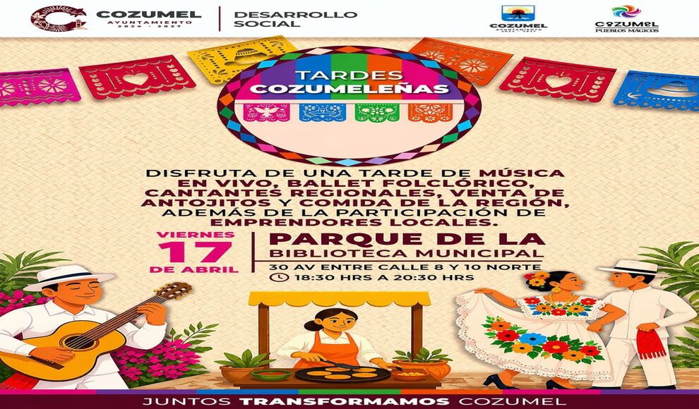 Las “Tardes Cozumeleñas” representan un espacio donde se fortalecen las raíces, la cultura y la identidad del Pueblo Mágico de Cozumel, al reunir a vecinas y vecinos en un ambiente de sana convivencia y familiar, en el que los emprendedores encuentran una plataforma para dar a conocer sus productos y generar ingresos, contribuyendo al desarrollo social y económico de la isla.