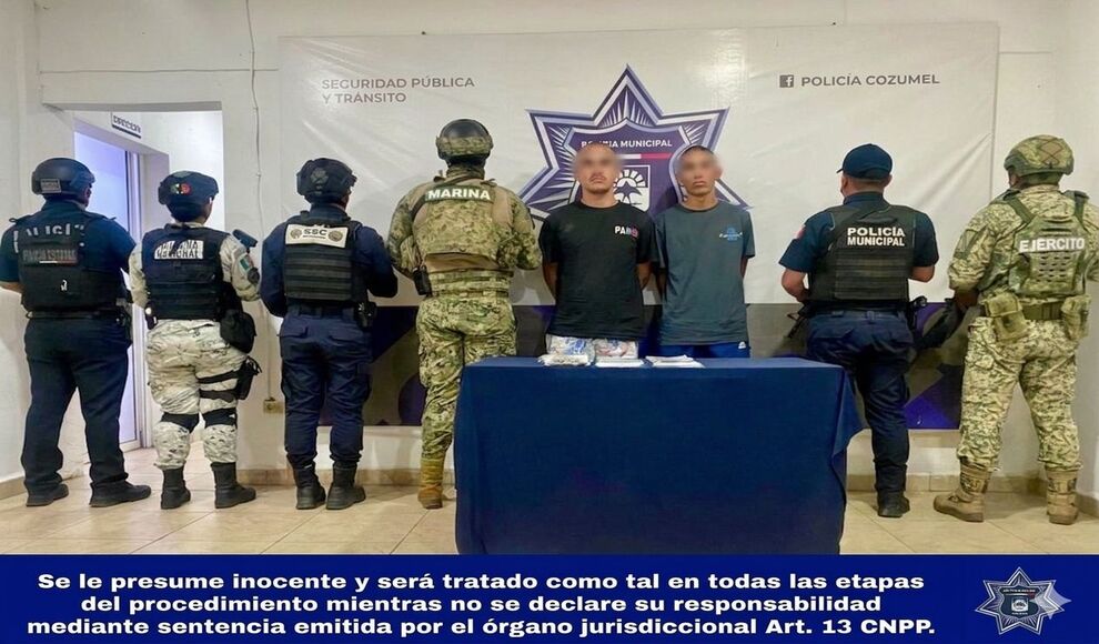 Cozumel, Quintana Roo -Elementos de Seguridad Pública de Cozumel aseguraron a dos personas del sexo masculino por su presunta participación en delitos contra la salud, quienes fueron puestos a disposición de la Fiscalía General del Estado.