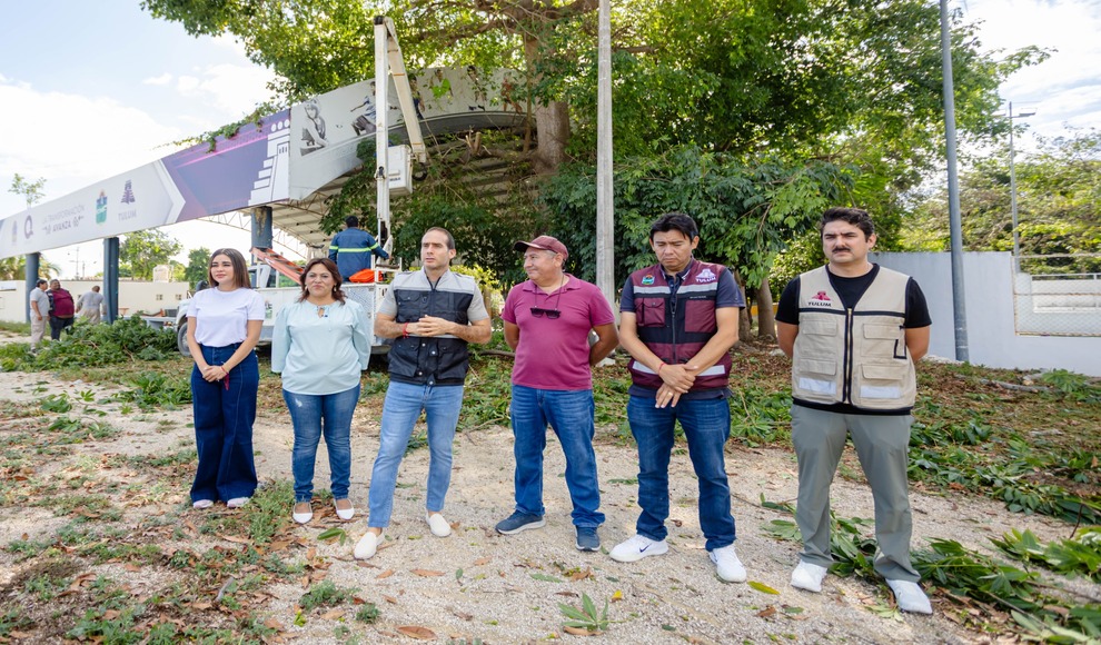 Tulum, Quintana Roo.- Como parte del compromiso por mejorar la imagen urbana y atender de manera directa las necesidades de la ciudadanía, el presidente municipal Diego Castañón Trejo realizó un recorrido en la comunidad de Chemuyil, donde acompañó al personal de Servicios Públicos durante una jornada de limpieza y rehabilitación.
