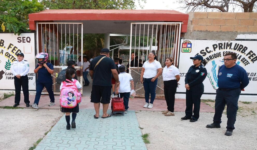Isla Mujeres, Quintana Roo.– Con el regreso a clases de más de 6 mil 700 alumnas y alumnos en el municipio de Isla Mujeres, el Gobierno Municipal, encabezado por la alcaldesa Atenea Gómez Ricalde, puso en marcha un operativo en las entradas de las escuelas para brindar un retorno seguro, ordenado y en óptimas condiciones para la comunidad estudiantil.