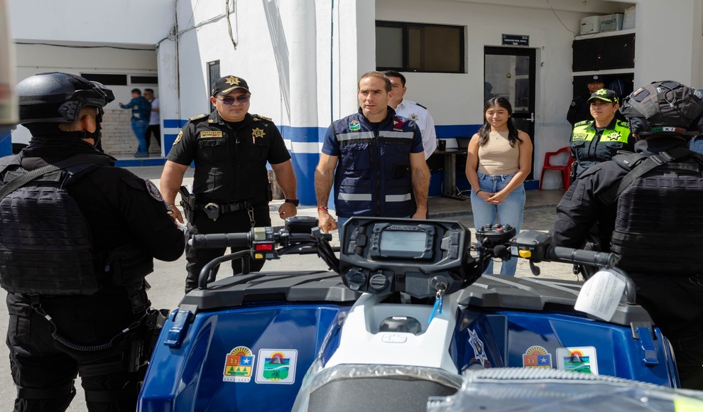 “A través del Fondo de Aportaciones para la Seguridad Pública, y con el respaldo de la Gobernadora Mara Lezama, hoy fortalecemos nuestras capacidades. Se integran a nuestra corporación un vehículo Polaris Ranger Crew, tres cuatrimotos Polaris Sportsman 570, dos motocicletas Suzuki V-Strom 250, además de equipo tecnológico y uniformes”, mencionó el presidente Castañón Trejo.