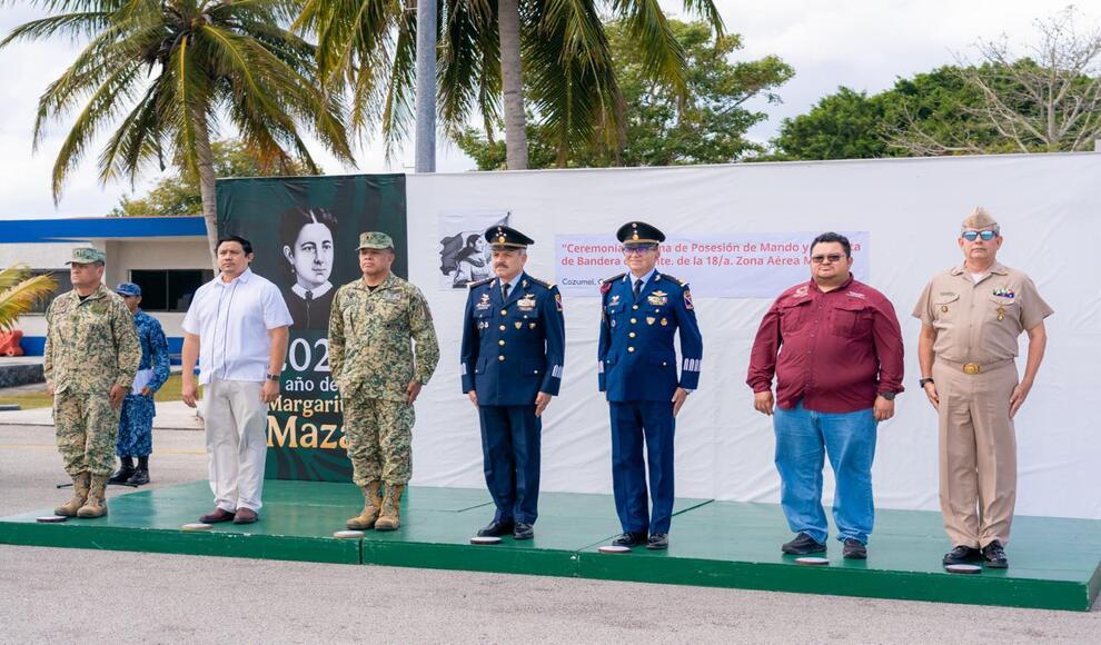 En el presidium estuvieron presentes el general de división piloto aviador de Estado Mayor, Edgar Salvador Rodríguez Franco, comandante de la Cuarta Región Aérea Militar, el licenciado Adrián Martínez Ortega, representante de la gobernadora del estado de Quintana Roo, el general de brigada de Estado Mayor, Fidel Mondragón Rivero, comandante de la 34 zona militar, José Luis Chacón Méndez, presidente municipal de Cozumel, el general brigadier de Estado Mayor, Armando Toscano Yáñez, comandante de la Guarnición Militar de Cozumel y el contralmirante de cuerpo general diplomado de Estado Mayor, Óscar Antonio González Huerta, comandante del Sector Naval de Cozumel.