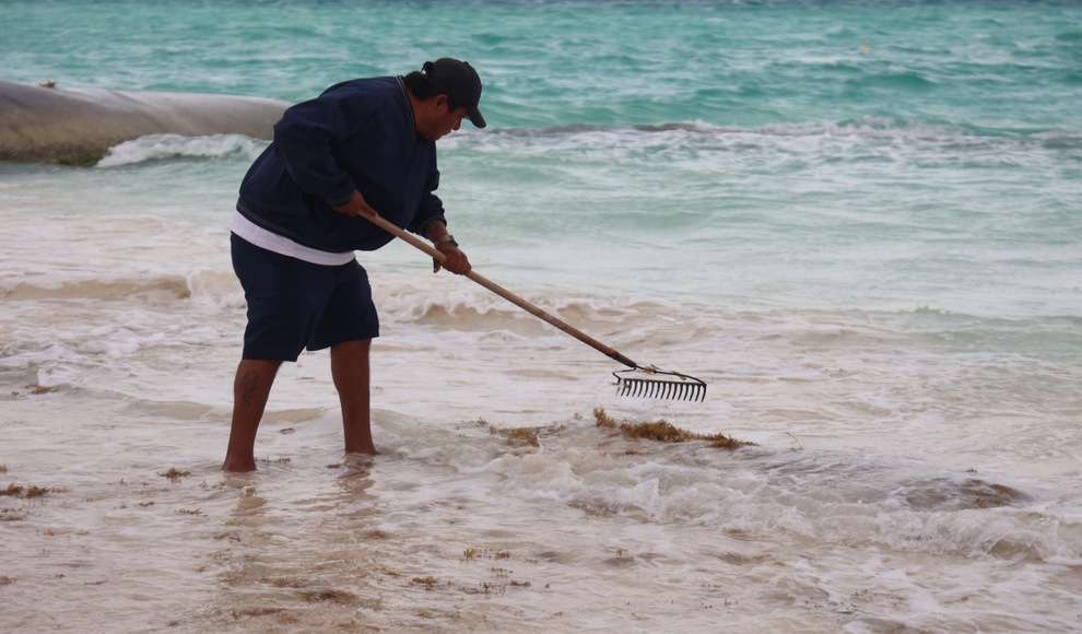 Gobierno de Isla Mujeres atiende con inmediatez recale atípico de sargazo en Playa Norte
