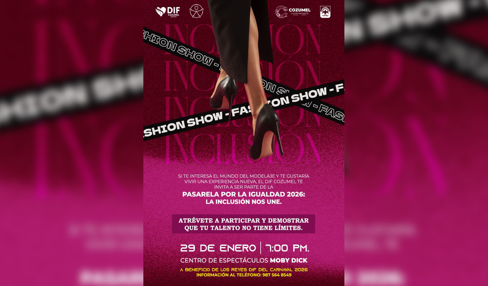 Cozumel, Quintana Roo.- Con el objetivo de recaudar fondos en apoyo a los Reyes DIF del Carnaval de Cozumel 2026 y su comparsa, el Sistema DIF Cozumel llevará a cabo el evento con causa “Pasarela por la Igualdad 2026: La inclusión nos une”, un desfile de moda inclusivo que promueve la igualdad, la participación social y el talento sin barreras.