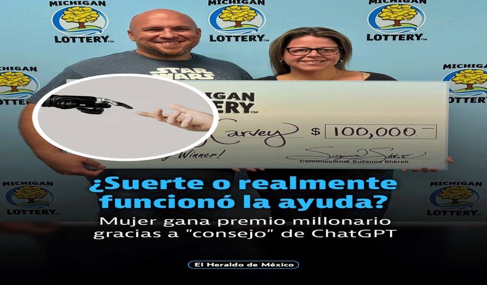 Tammy Carvey, una mujer residente de Wyandotte, Estados Unidos, se volvió viral tras ganar un premio millonario. Lo curioso fue que la ganadora del Powerball de la Lotería de Michigan es que colocó los números que le sugirió la Inteligencia Artificial. Gracias a que siguió el "consejo" de ChatGPT fue que Tammy logró hacerse con un cheque con varios ceros.